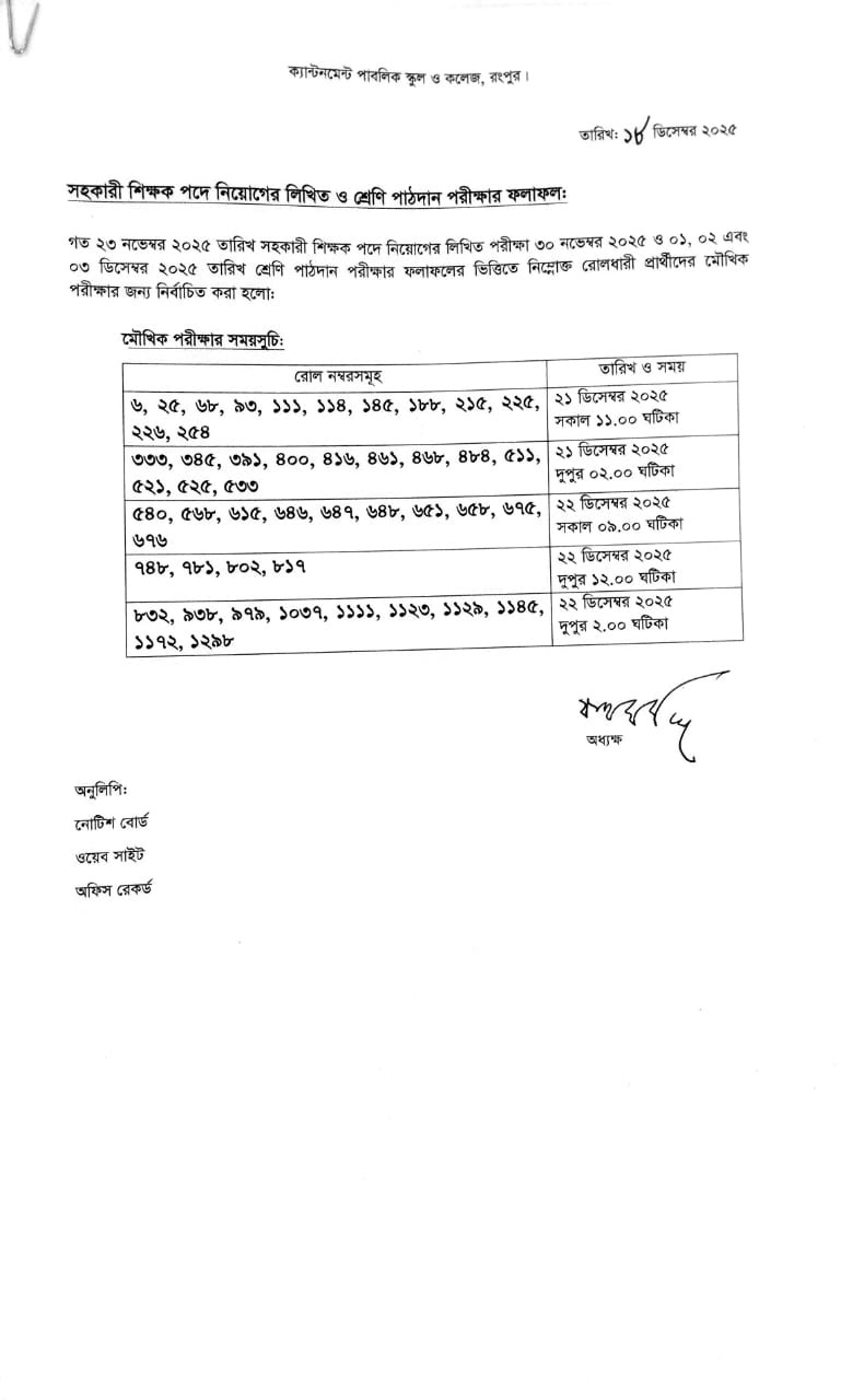 | October 12, 2025 | নিয়োগ (লিখিত) পরীক্ষার ফলাফল কলেজ ২০২৫ |