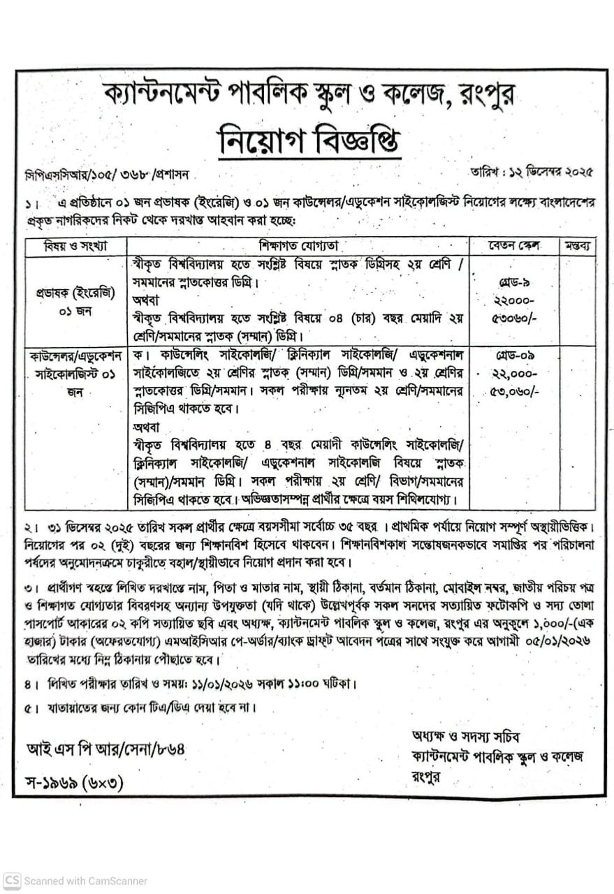 | December 24, 2025 | নিয়োগ বিজ্ঞপ্তি, ডিসেম্বর ২০২৫ |